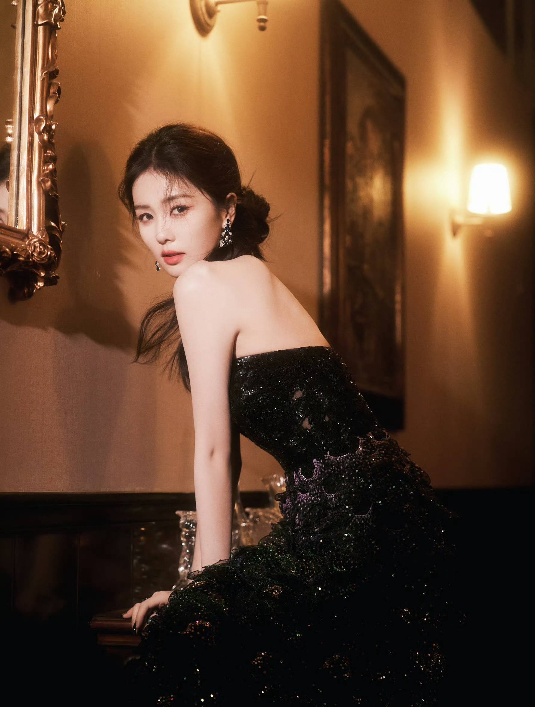 没过几天的银黑亮片裙造型更是争议升级。这条来自Ulyana Sergeenko高定系列的礼服,原本设计亮点是不对称肩线和渐变亮片,但白鹿穿上后却暴露了致命短板——含胸驼背的体态让直角肩优势荡然无存,腰部堆积的褶皱更显得胯宽腰粗。有网友对比同品牌代言人的硬照,发现模特穿起来是“暗夜女王”,白鹿却穿出了“礼仪小姐”既视感。更要命的是她当天选择的厚底防水台高跟鞋,与礼服的优雅气质完全脱节,被时尚博主辣评“像是临时从化妆间抓来的鞋”。